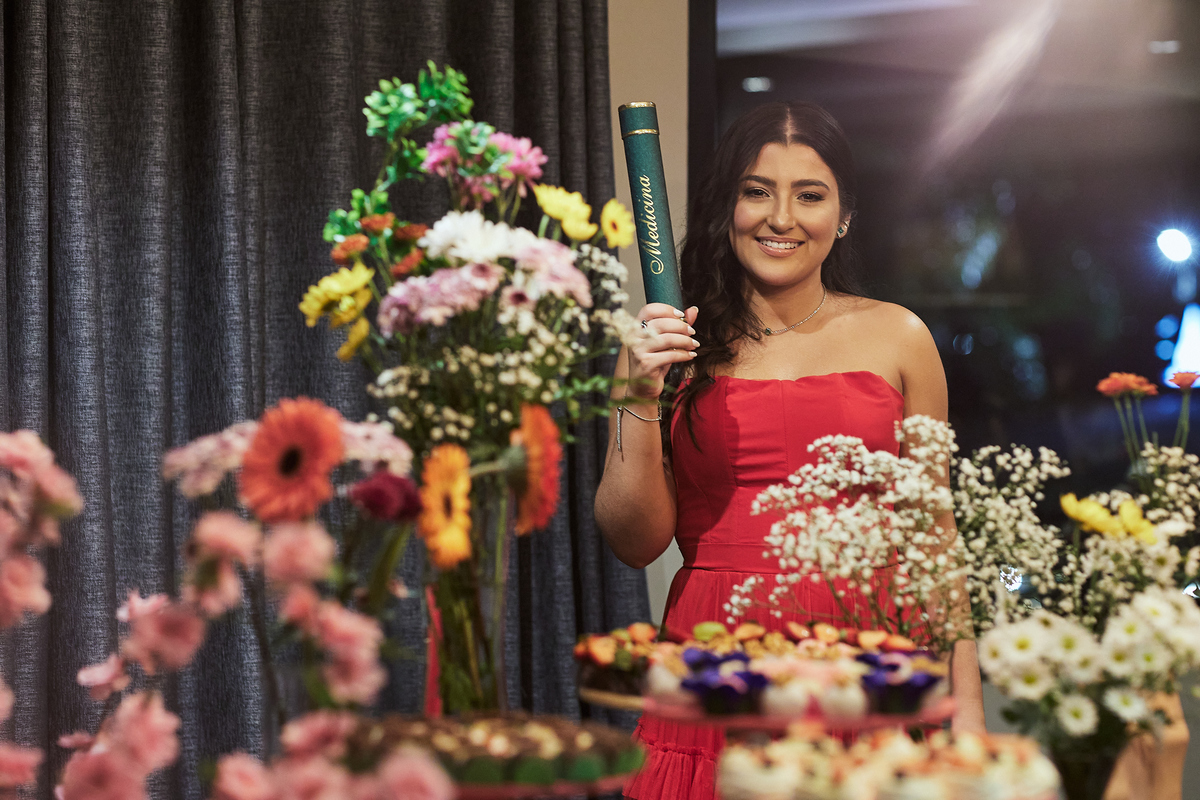 A formada em medicina Thamires comemorou com familiares sua grande conquista.